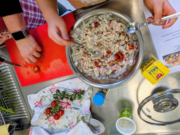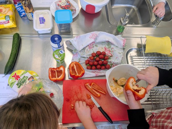 Besonders berührt hat mich, wie motiviert die Kinder waren. Sie haben nicht nur begeistert geschnippelt, gerührt und dekoriert, sondern auch beim Aufräumen und Spülen selbstverständlich mit angepackt. Die Rezepte waren auf die Eltern-Kind-Paare verteilt, doch jedes Kind schaute auch bei den anderen vorbei – half hier, probierte dort, stellte Fragen. So bekam jeder einen Einblick in alles.