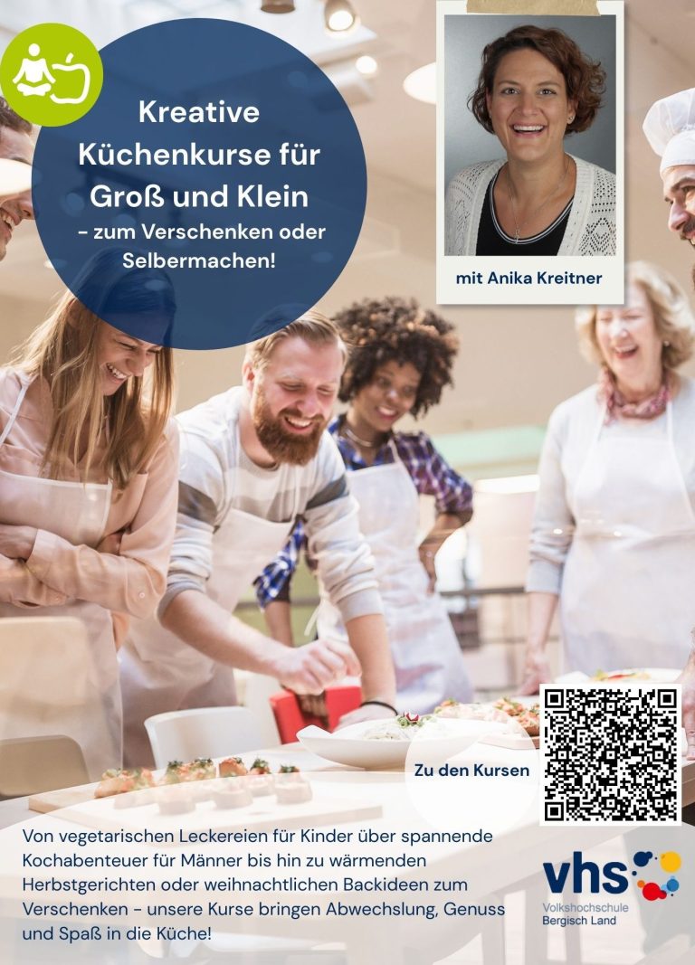 Ich freue mich, ein Teil dieses bunten Programms zu sein – und lade gleichzeitig herzlich dazu ein, auch die vielen anderen spannenden Angebote der VHS Bergisch Land kennenzulernen. Es lohnt sich, über den eigenen Tellerrand hinauszuschauen.
